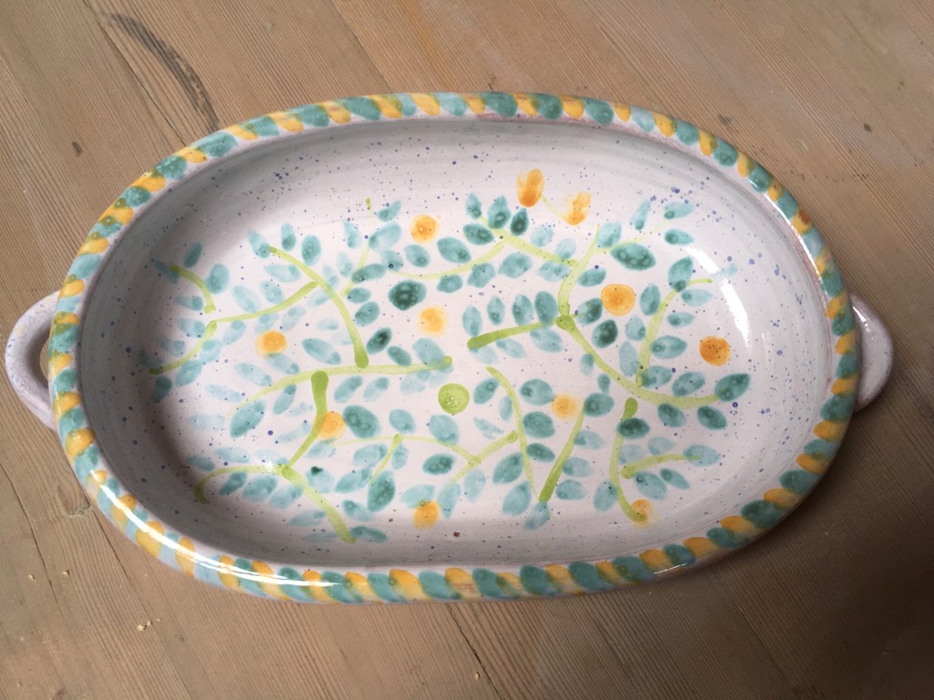 sind aus einem Ton mit hoher Temperaturwechselbeständigkeit und daher wirklich für Lasagne, Fisch, Kartoffelgratin, Apfelstrudel, Weihnachtsstollen – kurzum für den Backofen -geeignet.